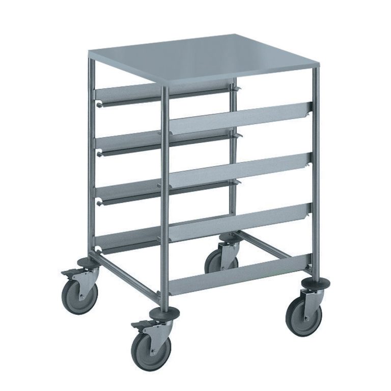 Carrello con guide per 4 cesti lavastoviglie con piano
