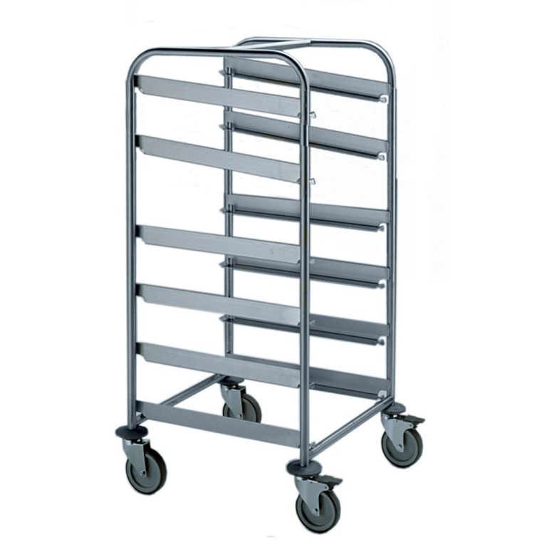Carrello con guide per 6 cesti lavastoviglie (le due coppie di guide superiori sono inclinate)