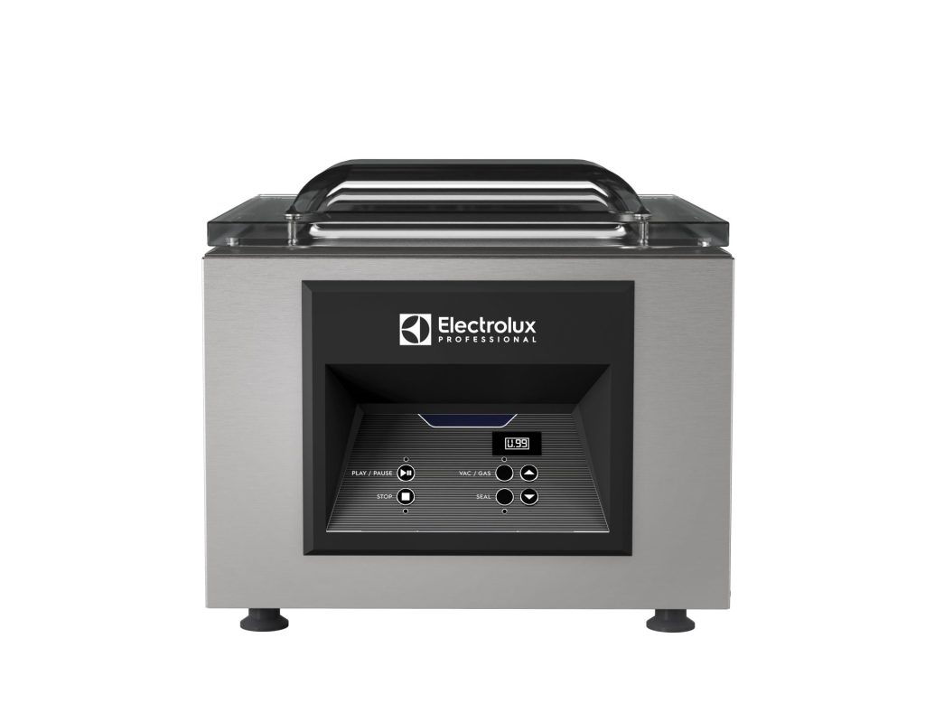 - Predisposta per il confezionamento sottovuoto esterno in contenitori collegando un apposito tubo alla bocchetta di estrazione aria (disponibile come ricambio).