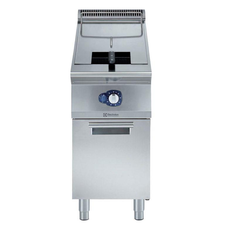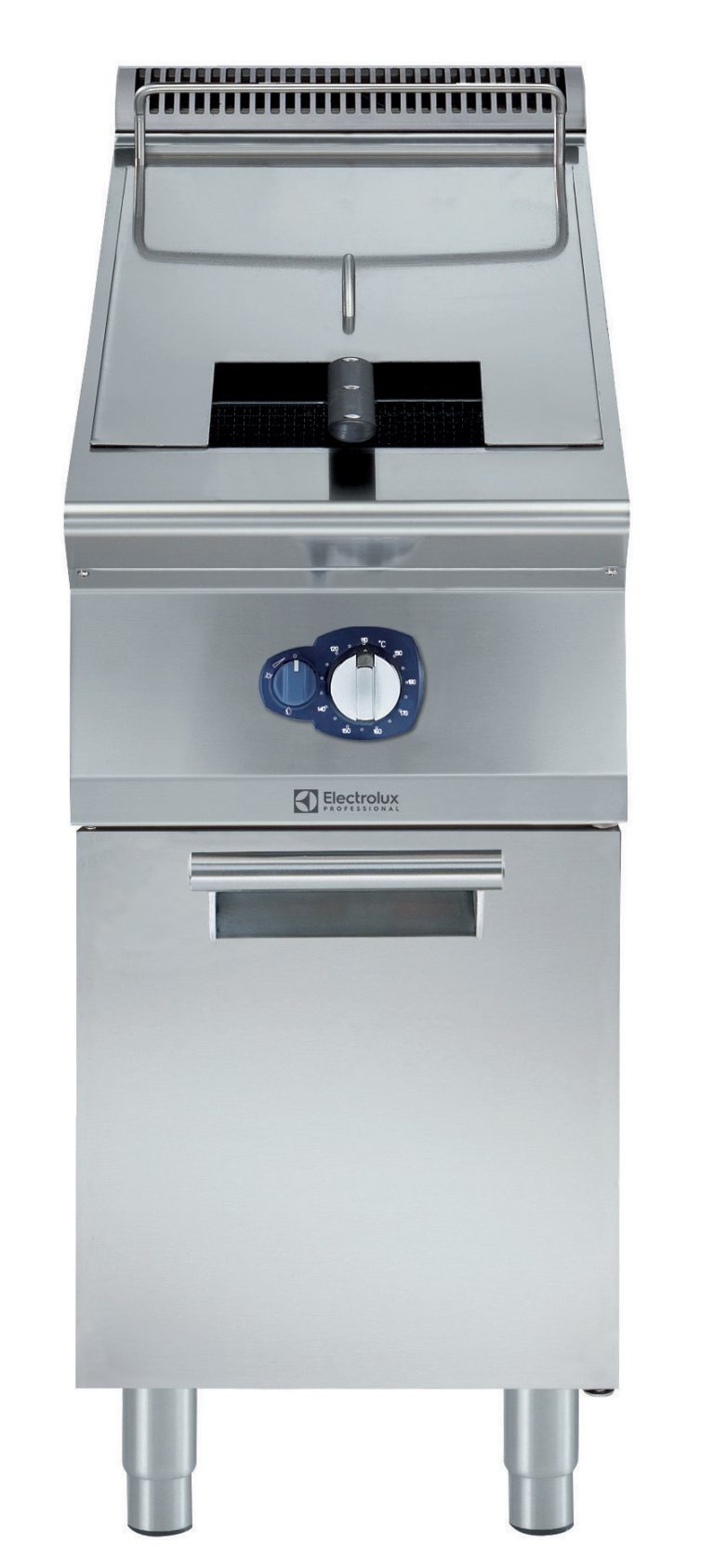 Friggitrice a gas 15 litri, 1 vasca a "V" (bruciatori esterni) e 1 cestello