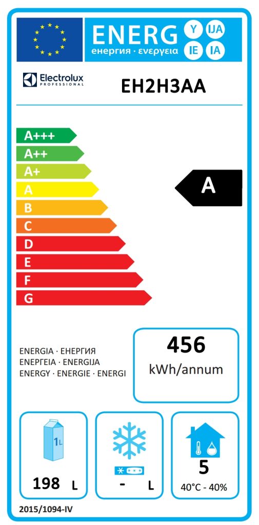 - Consumi energetici annuali e giornalieri (in riferimento al Regolament: 456kWh/anno - 1.25kWh/24h