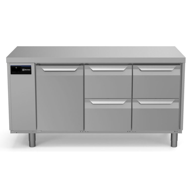 Tavolo refrigerato 440 litri, 1 porta, 4 cassetti, -2+10°C, AISI 304, remoto