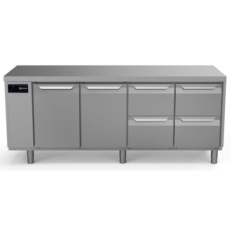 Tavolo refrigerato 590 litri, 2 porte, 4 cassetti, -2+10°C, AISI 304, remoto