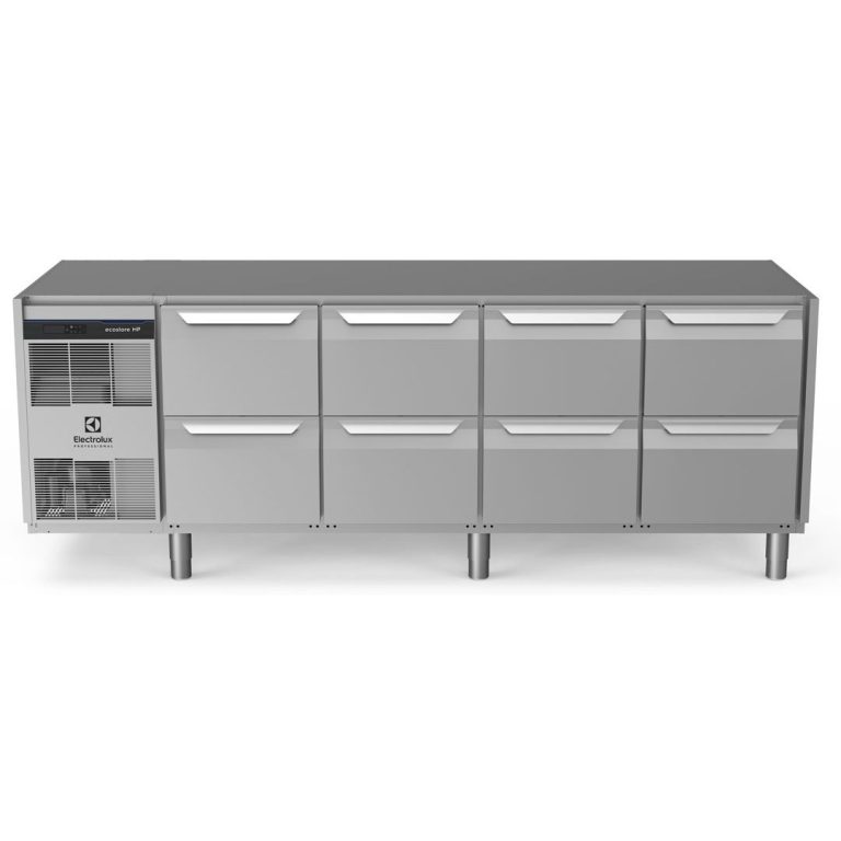Tavolo refrigerato 590 litri, 8 cassetti, -2+10°C, AISI 304, senza top