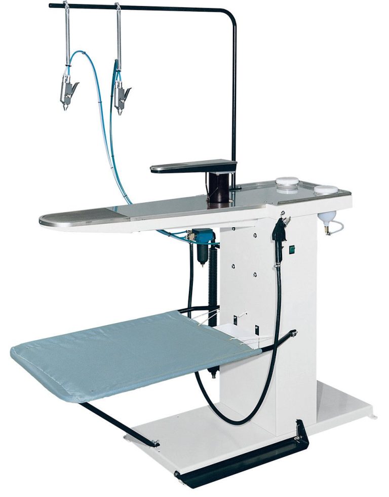 Smacchiatrice a freddo. 2 pistole smacchiatrici con container, tavolo in accioio inox e forma a manica.