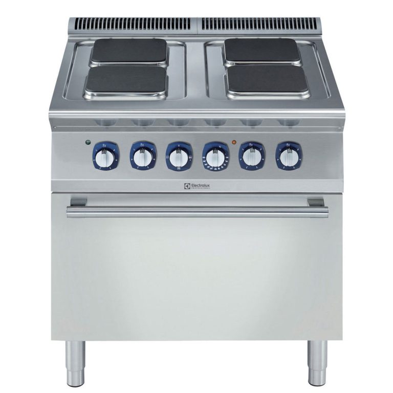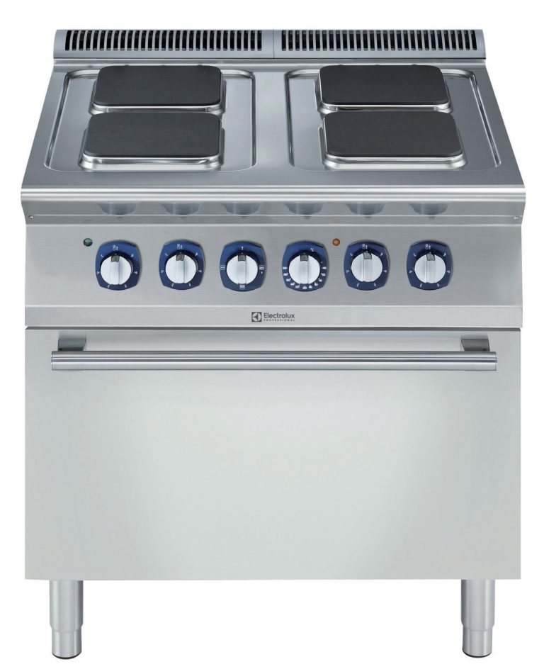 Cucina elettrica top 4 piastre quadre (2,6 kw cad.) su forno elettrico statico (6 kw)