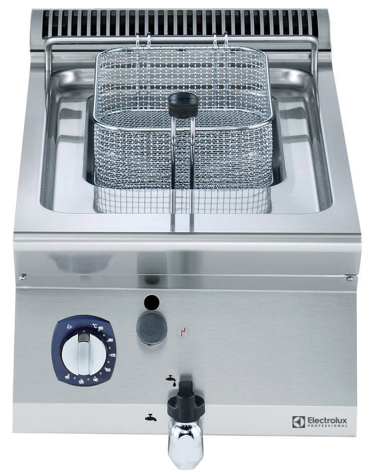 Friggitrice a gas top 7 litri, 1 vasca a "V" (bruciatori esterni) e 1 cestello