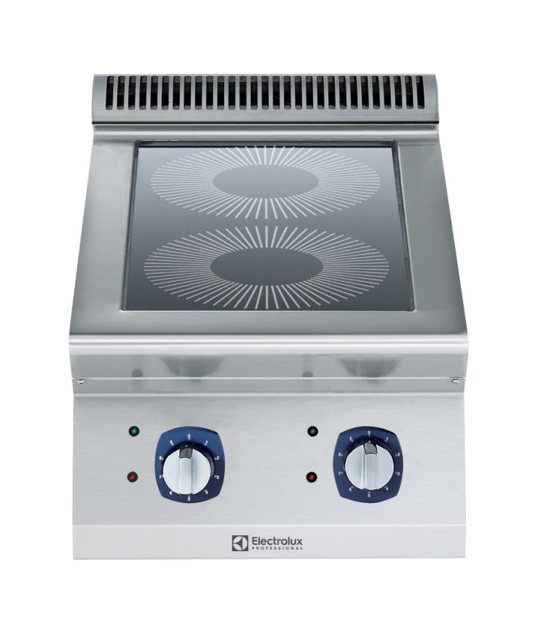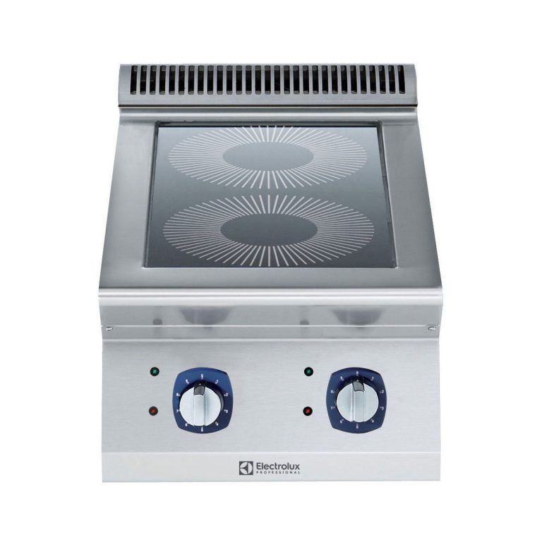 - Superficie di cottura in vetroceramica di 6mm di spessore dotata di due zone di induzione da 5 kW ciascuna.