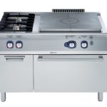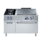 Tuttapiastra a gas (7 kw) modulo intero combinato con 2 fuochi (2x5,5 kw) su forno a gas statico (6 kw) e vano armadiato
