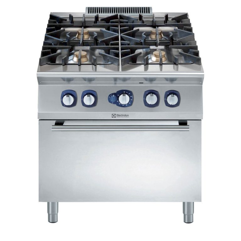 Cucina a gas 4 fuochi (4x6kw) su forno a gas statico (8,5kw)