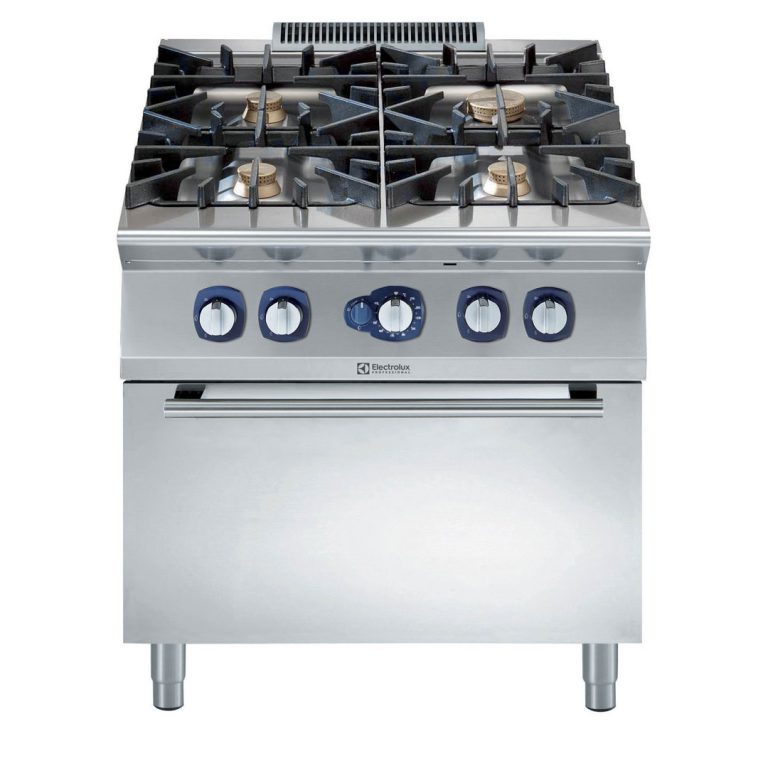 Cucina a gas 4 fuochi (1x10kw+3x6kw) su forno a gas statico (8,5kw)