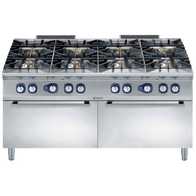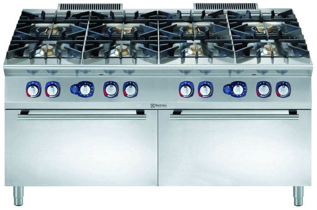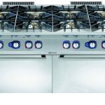 Cucina a gas 8 fuochi (2x10kw+6x6kw) su 2 forni a gas statici (8,5kw cad.)