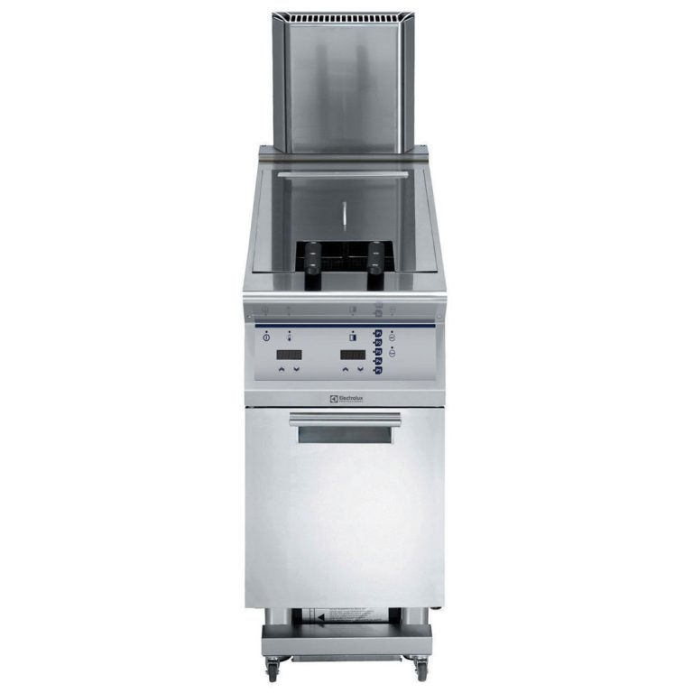 Friggitrice HP elettrica, 23 litri, con 1 vasca a "V" (resistenze esterne) e 2 1/2 cesti, controllo elettronico della temperatura e del tempo, programmabile, pompa per il ricircolo dell'olio, predisposto per il sistema di filtraggio avanzato