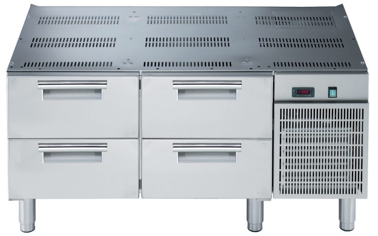 Base refrigerata con 4 cassetti GN 1/1, -2+10°C, da 1200 mm, 60 Hz, gas R290