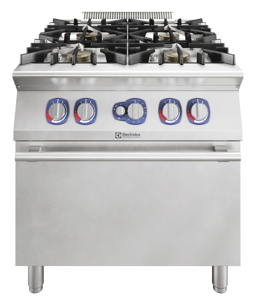 Cucina a gas 4 fuochi EcoFlame (4x10kw) su forno a gas statico (8,5kw)