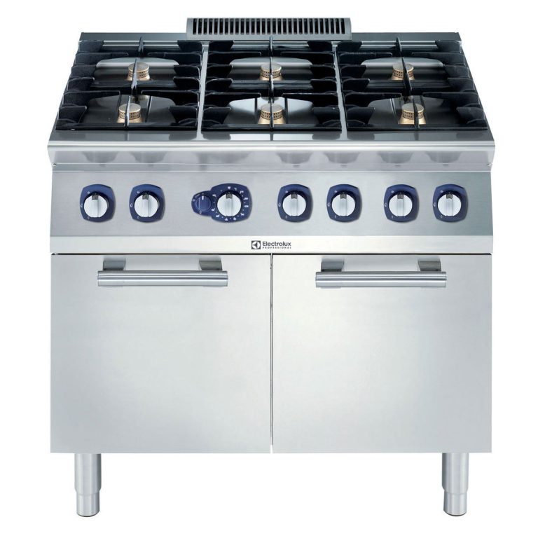 Cucina a gas 6 fuochi (6x5,5 kw) su forno grande a gas statico (9 kw)