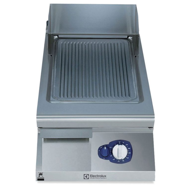 - Superficie di cottura in acciaio al cromo spazzolato con spessore 15 mm per risultati di cottura ottimali.