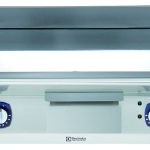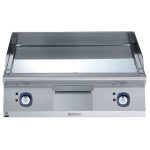 Fry top elettrico con piastra liscia e inclinata, in acciaio al cromo lucido, modulo intero, controllo termostatico. Raschietto incluso