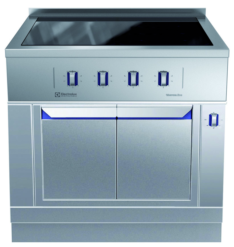 Piano ad induzione 4 zone, su vano caldo - igiene H2, con alzatina posteriore - 1 lato operatore