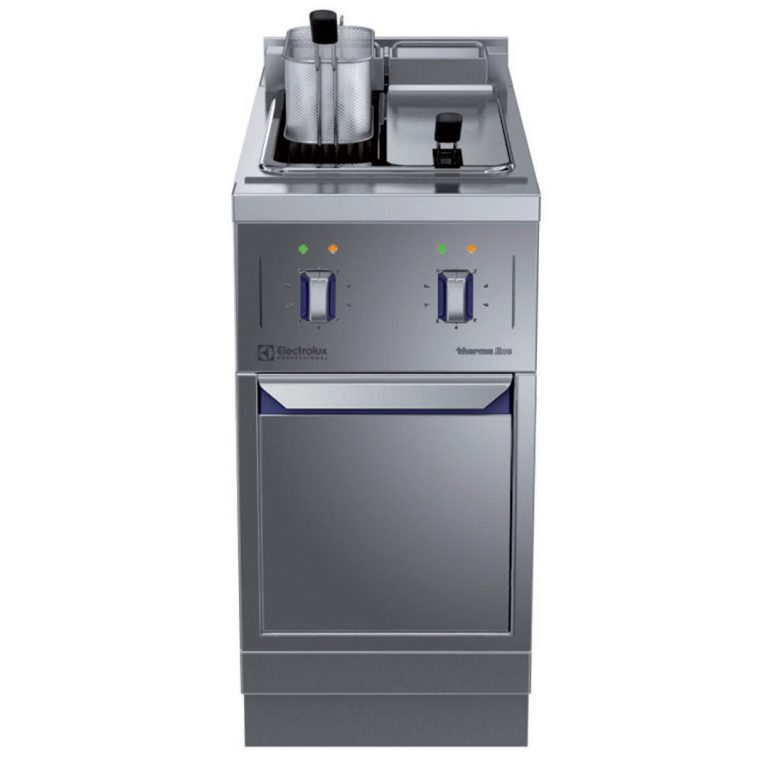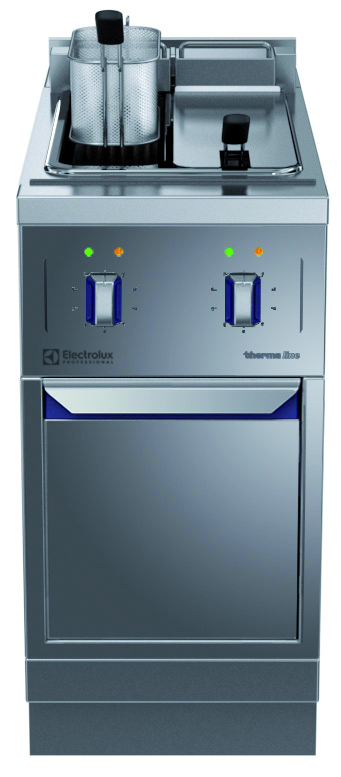 Friggitrice elettrica 5+5 lt, 2 vasche, con alzatina posteriore - 1 lato operatore