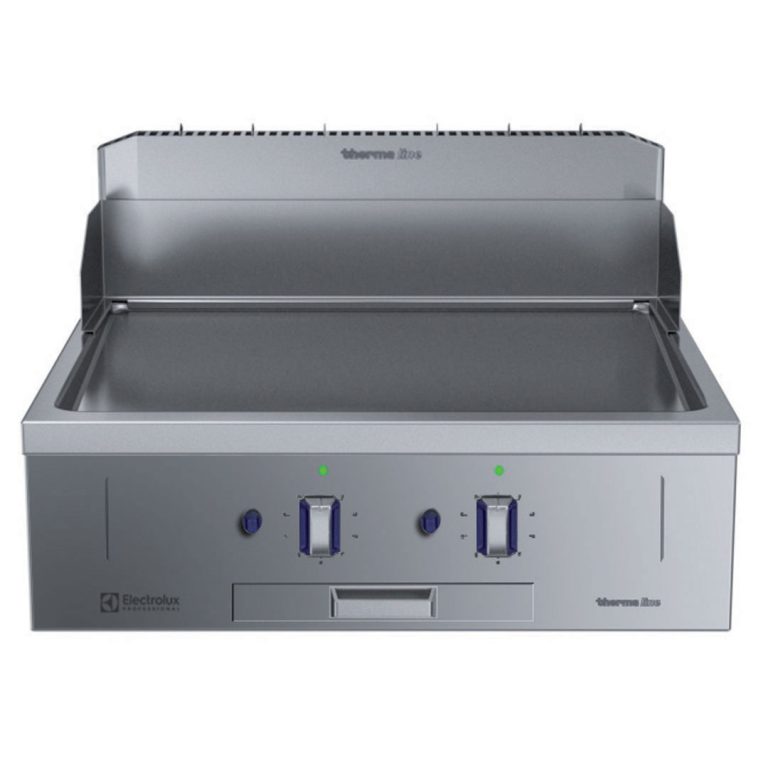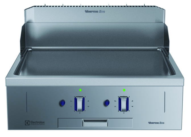 Fry top a gas con piastra liscia al cromo, modulo intero, con alzatina posteriore - 1 lato operatore