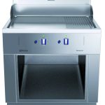 Fry top a gas con piastra liscia/rigata al cromo, modulo intero, con alzatina posteriore - 1 lato operatore