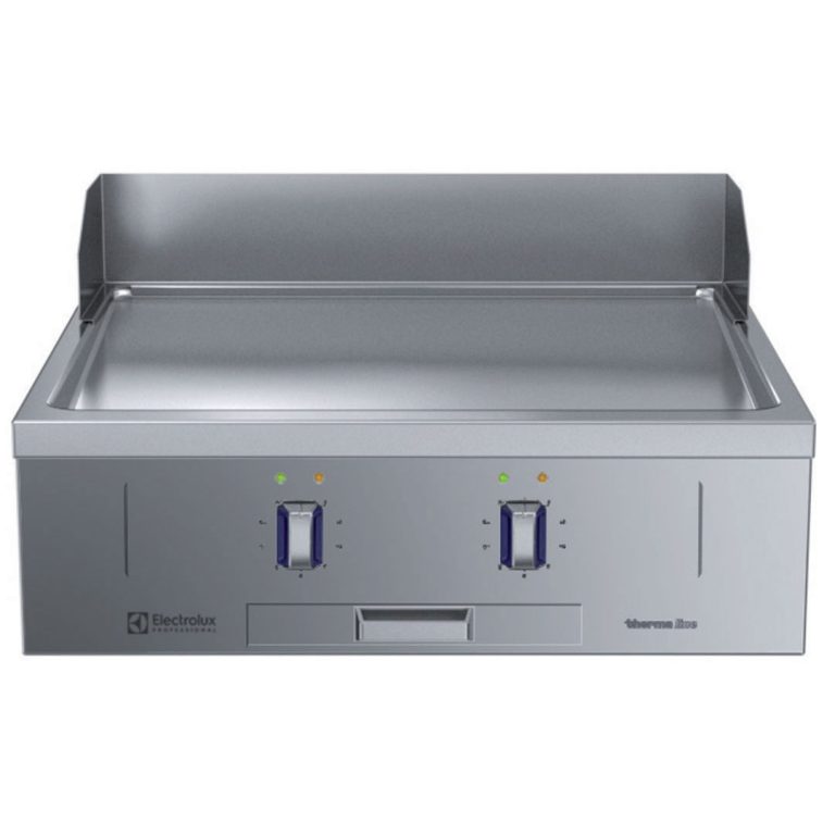 Fry top elettrico con piastra liscia al cromo, modulo intero, con alzatina posteriore - 1 lato operatore