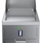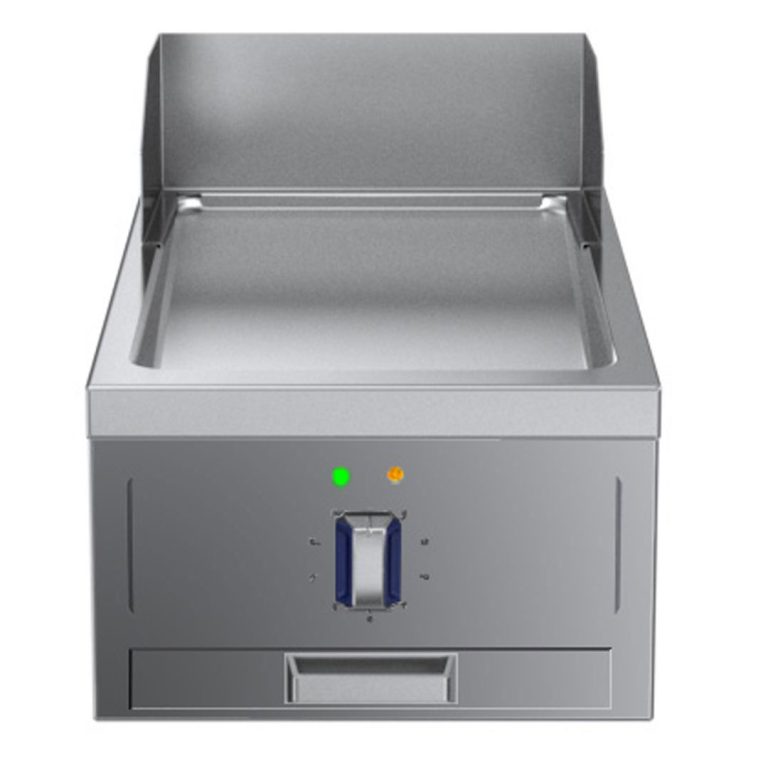 Fry top elettrico con piastra liscia al cromo, ½ modulo, con alzatina posteriore - 1 lato operatore