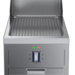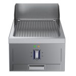 Fry top elettrico con piastra rigata al cromo, ½ modulo, con alzatina posteriore - 1 lato operatore