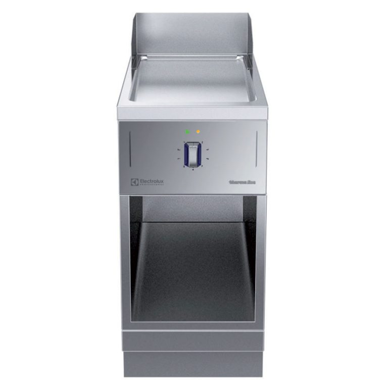 Fry top elettrico con piastra liscia al cromo, ½ modulo, con alzatina posteriore - 1 lato operatore