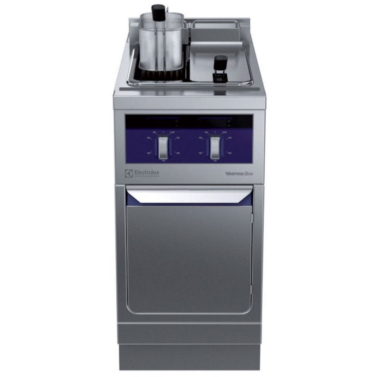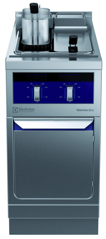 Friggitrice elettrica 5+5 lt, 2 vasche, con alzatina posteriore - 1 lato operatore