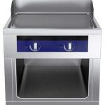 - Ampio foro di scarico della piastra per consentire il drenaggio dei grassi di cottura verso un grande recipiente posto sotto la superficie di cottura.