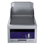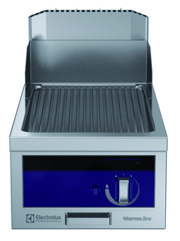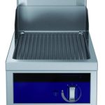 Fry top a gas con piastra rigata al cromo, ½ modulo, con alzatina posteriore - 1 lato operatore