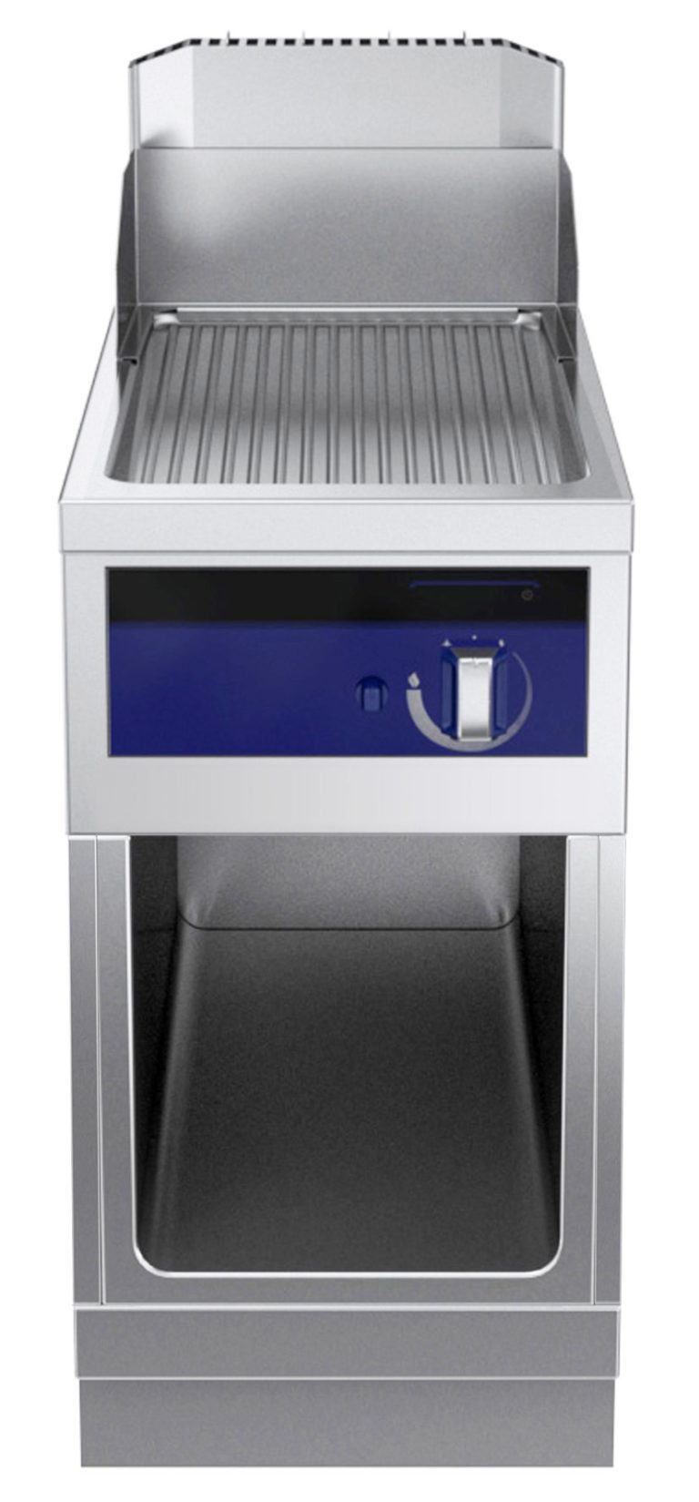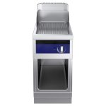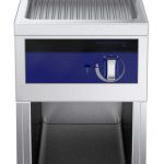 Fry top a gas con piastra rigata al cromo su vano aperto, ½ modulo, con alzatina posteriore - 1 lato operatore