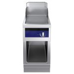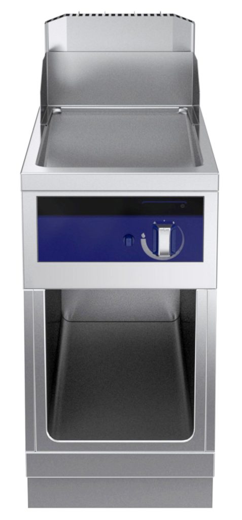 Fry top a gas con piastra liscia al cromo su vano aperto, ½ modulo, con alzatina posteriore - 1 lato operatore