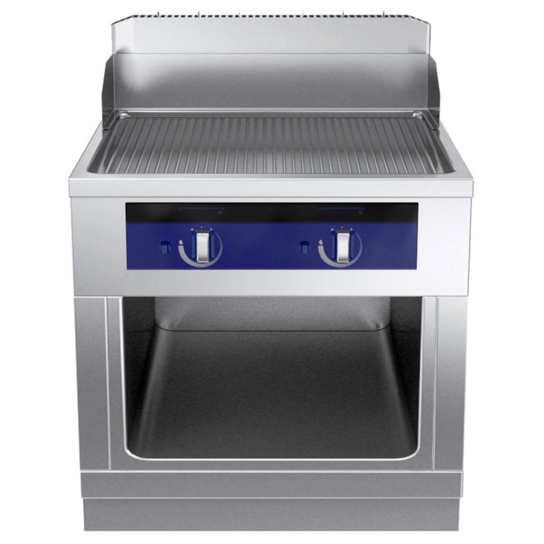 Fry top a gas con piastra rigata al cromo su vano aperto, modulo intero, con alzatina posteriore - 1 lato operatore