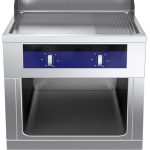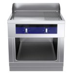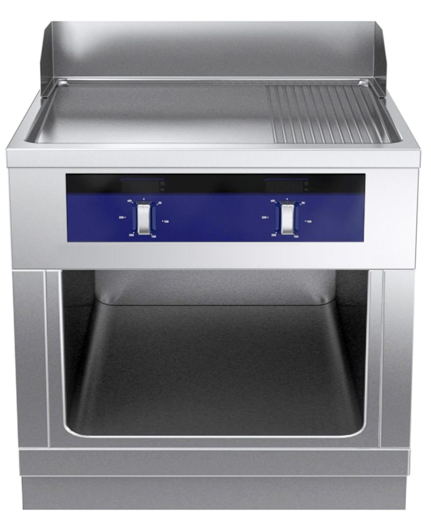 Fry top elettrico con piastra liscia/rigata al cromo su vano aperto, modulo intero, con alzatina posteriore - 1 lato operatore