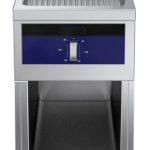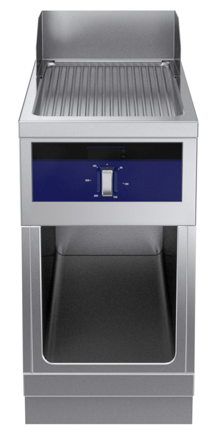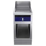 Fry top elettrico con piastra rigata al cromo su vano aperto, ½ modulo - 1 lato operatore