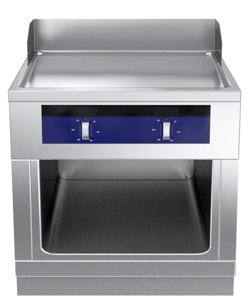 Fry top elettrico con piastra liscia al cromo su vano aperto, modulo intero - 1 lato operatore