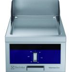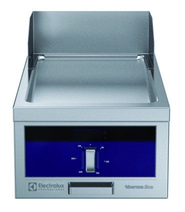 Fry top elettrico con piastra liscia al cromo, ½ modulo, con alzatina posteriore - 1 lato operatore