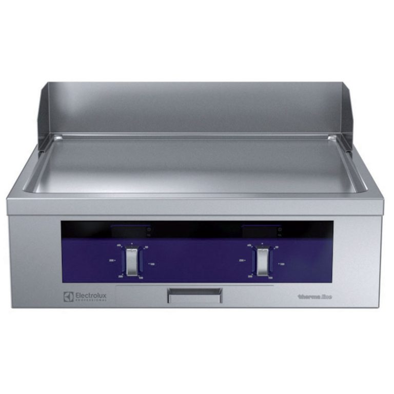 Fry top elettrico con piastra liscia al cromo, modulo intero, con alzatina posteriore - 1 lato operatore