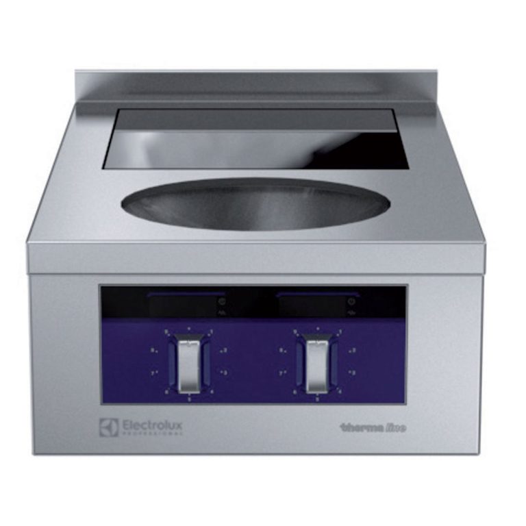 Wok e piastra top ad induzione, 2 zone, con alzatina posteriore - 1 lato operatore