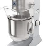 Mescolatrice planetaria 8 lt. Completa di frusta inox, spatola inox, uncino a spirale inox. Motore asincrono. Sensore di rilevamento presenza vasca, variatore di velocità elettronico. Schermo di protezione privo di BPA. Elettronica.