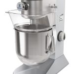 Mescolatrice planetaria 8 lt. Completa di frusta inox, spatola inox, uncino a spirale inox. Motore asincrono. Sensore di rilevamento presenza vasca, variatore di velocità elettronico. Schermo di protezione privo di BPA. Presa accessori tipo K. Elettronica.