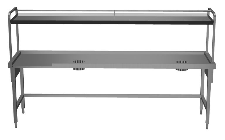 - Tavolo di sbarazzo con sovrastruttura inclinabile da entrambi i lati.