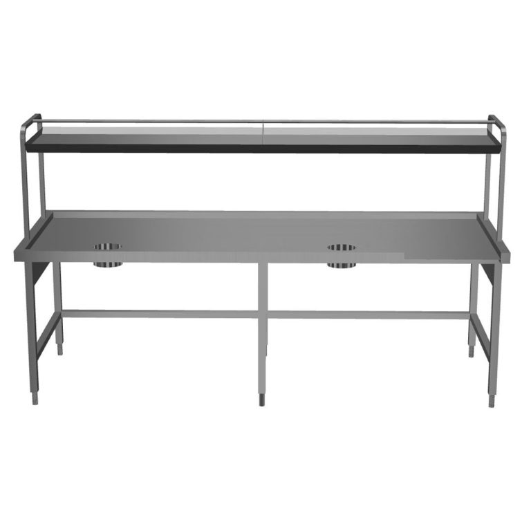 - Tavolo di sbarazzo con sovrastruttura inclinabile da entrambi i lati.