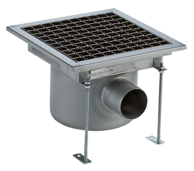 Piletta sifoide con top grigliato, filtro, scarico orizzontale dia.70 mm, AISI 304