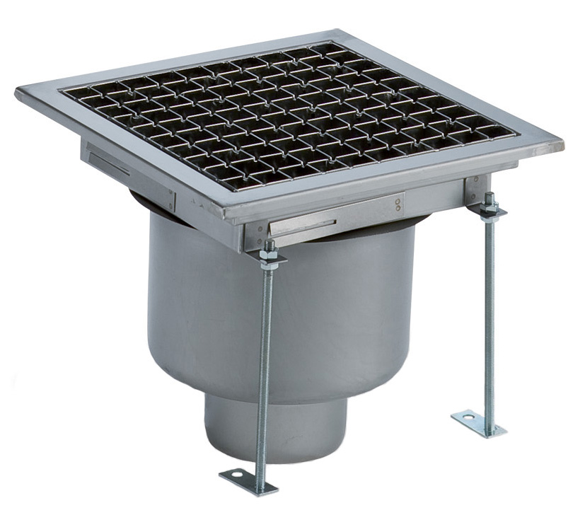Piletta sifoide con top grigliato, filtro ,scarico verticale dia.100 mm, AISI 304