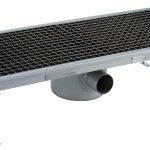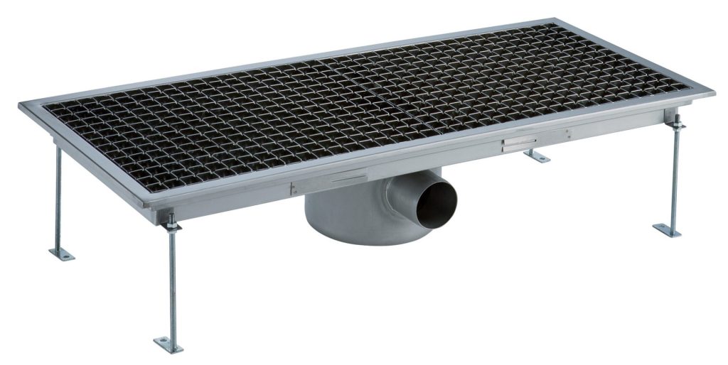 Vasca di raccolta con grigliato, sifone centrale, filtro, scarico orizzontale dia.70 mm, AISI 304