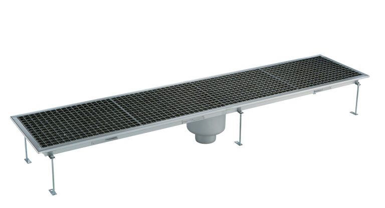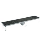 Vasca di raccolta con grigliato, sifone centrale, filtro, scarico verticale dia.100 mm, AISI 304